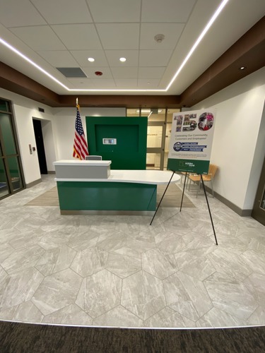 Once you walk through the front doors, you will enter our lobby and see our newly renovated greeter station! Prior to construction, this area served as a connection between the branch and our Reception Area. Now, it will serve as a fully functional transaction station!
